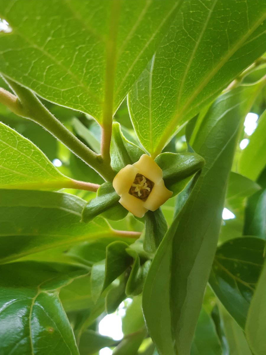 カキの花が咲いています 雌雄異花なので 雌花と雄花を探してみました