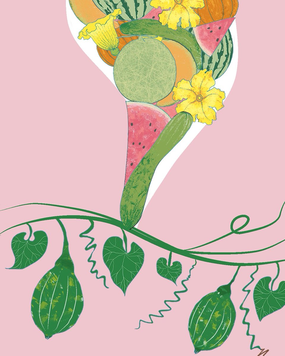 かぼちゃの葉ときゅうりの花 平木照美 作品と日々のこと