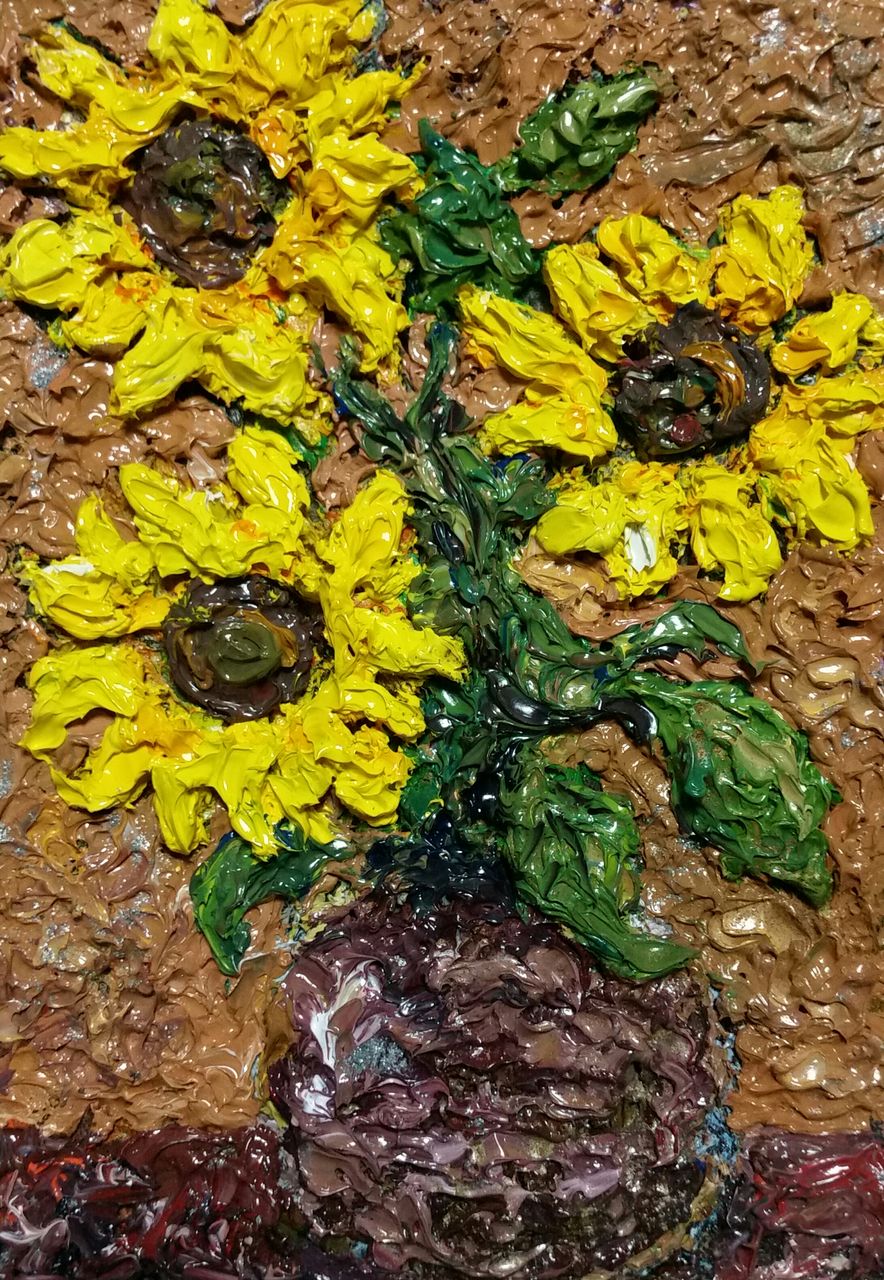 絵画教室で描く ユミコちゃんのひまわりの油彩画f8
