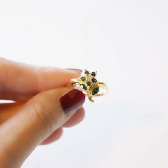 ヴィンテージ リング 指輪 Avonエイボン ブルーフラワー ラインストーン 箱box付き レトロ アクセサリー ジュエリー ヴィンテージアクセサリーショップ Attireine