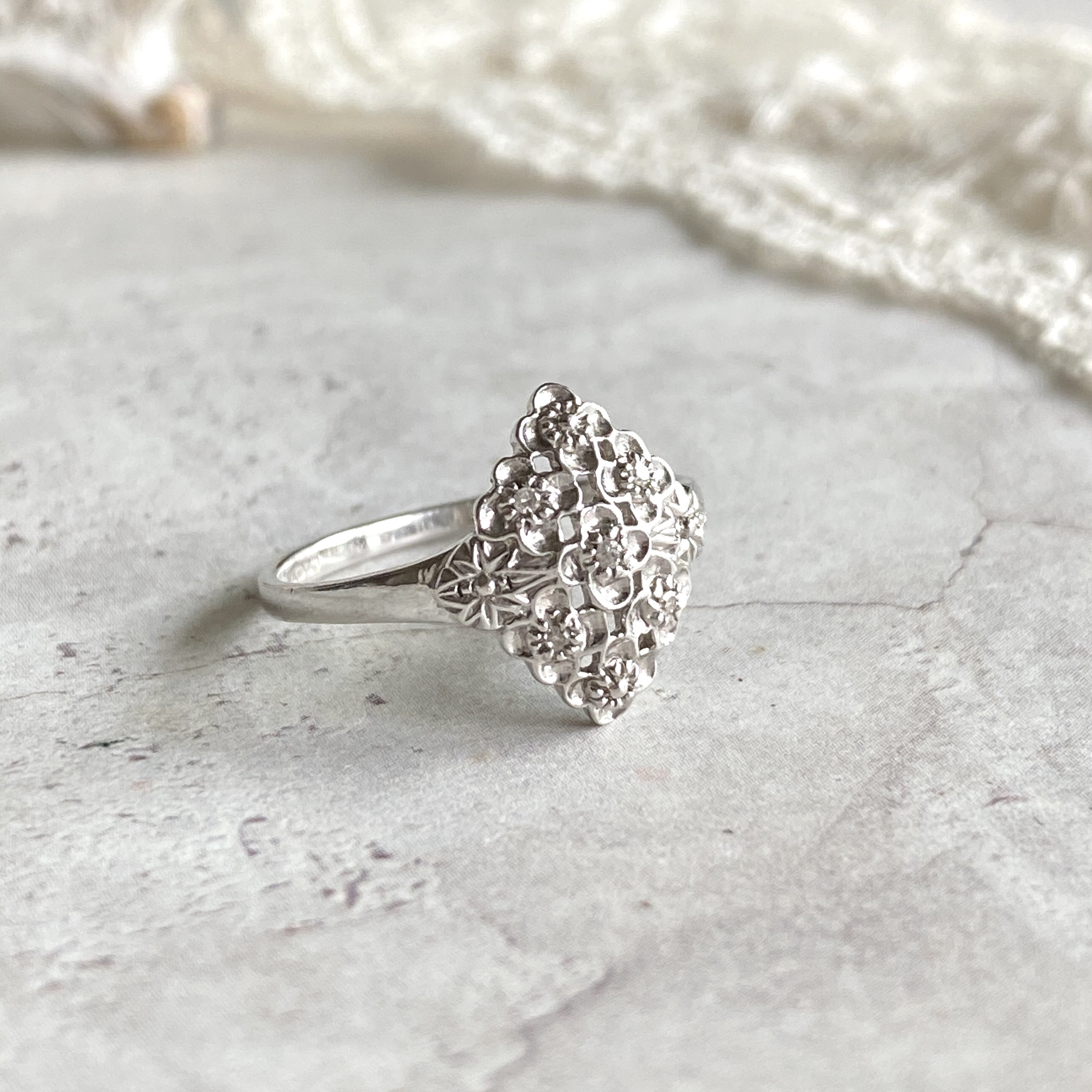 1910年頃の15金アンティークリング ダイヤモンドの美しい花 アンティークリング ダイヤモンド ダイヤモンド指輪