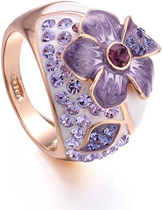 指輪 レディース 花柄 パープル ファッションリング 18kゴールド 太め 花 キラキラ指輪 売れ筋 ジュエリー 人気 プレゼント ダイヤ