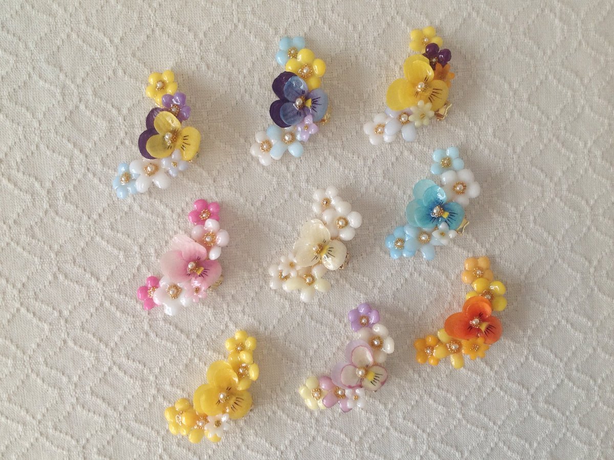 Paper Moon On Twitter 染め花を樹脂加工した小花の三日月型片耳