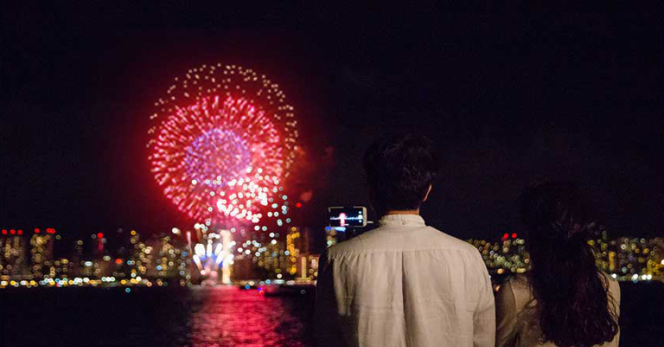 近すぎる距離に驚き ヒルトン花火の内緒の特等席 Knowing